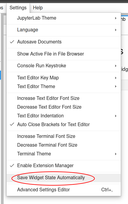 JupyterLab option to save the interactive widget state automatically